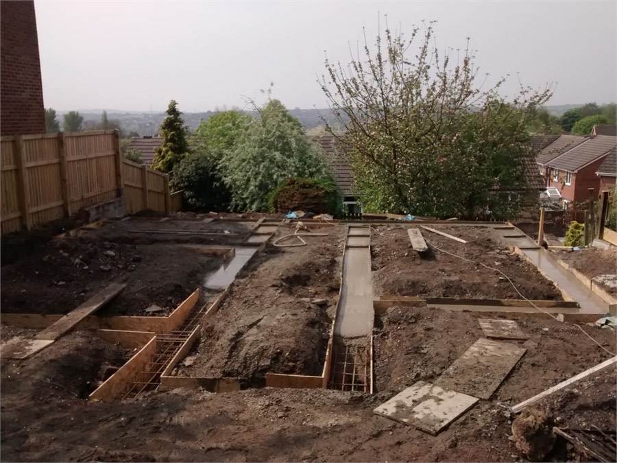 This detached house at Heckmondwike, West Yorkshire was built on a plot covered with several metres of filled ground right on the edge of a steep drop. The previous house had suffered with movement and been demolished. The new piled foundation was fully completed in around two weeks.