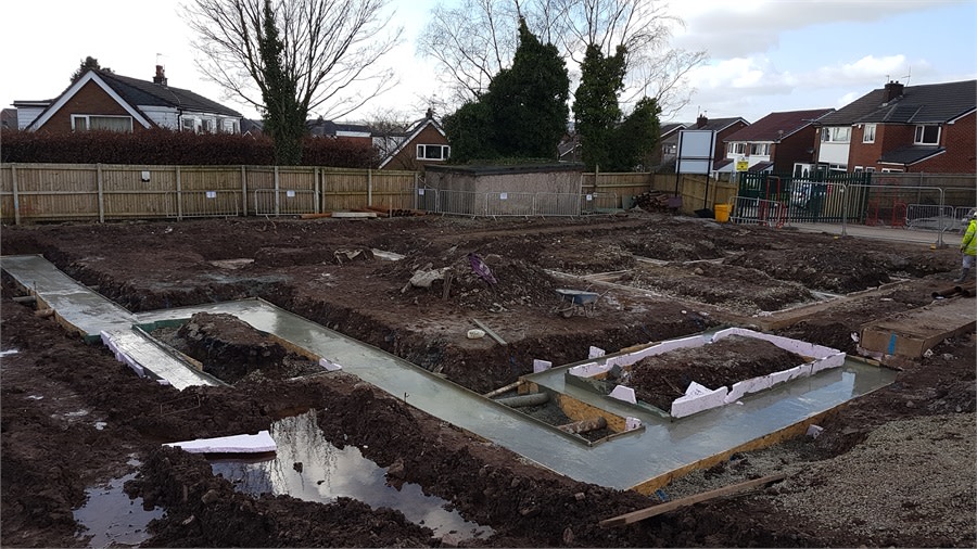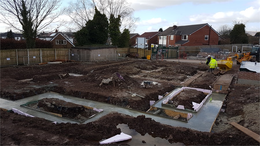 The Brickworks is a new housing development in north Bury. We spent around 6 months on and off site starting in November 2017. The piled foundations we installed here were for typical 3 and 4 bedroom detached houses, semi detached houses, garages and retaining walls to deal with changing levels on the site.